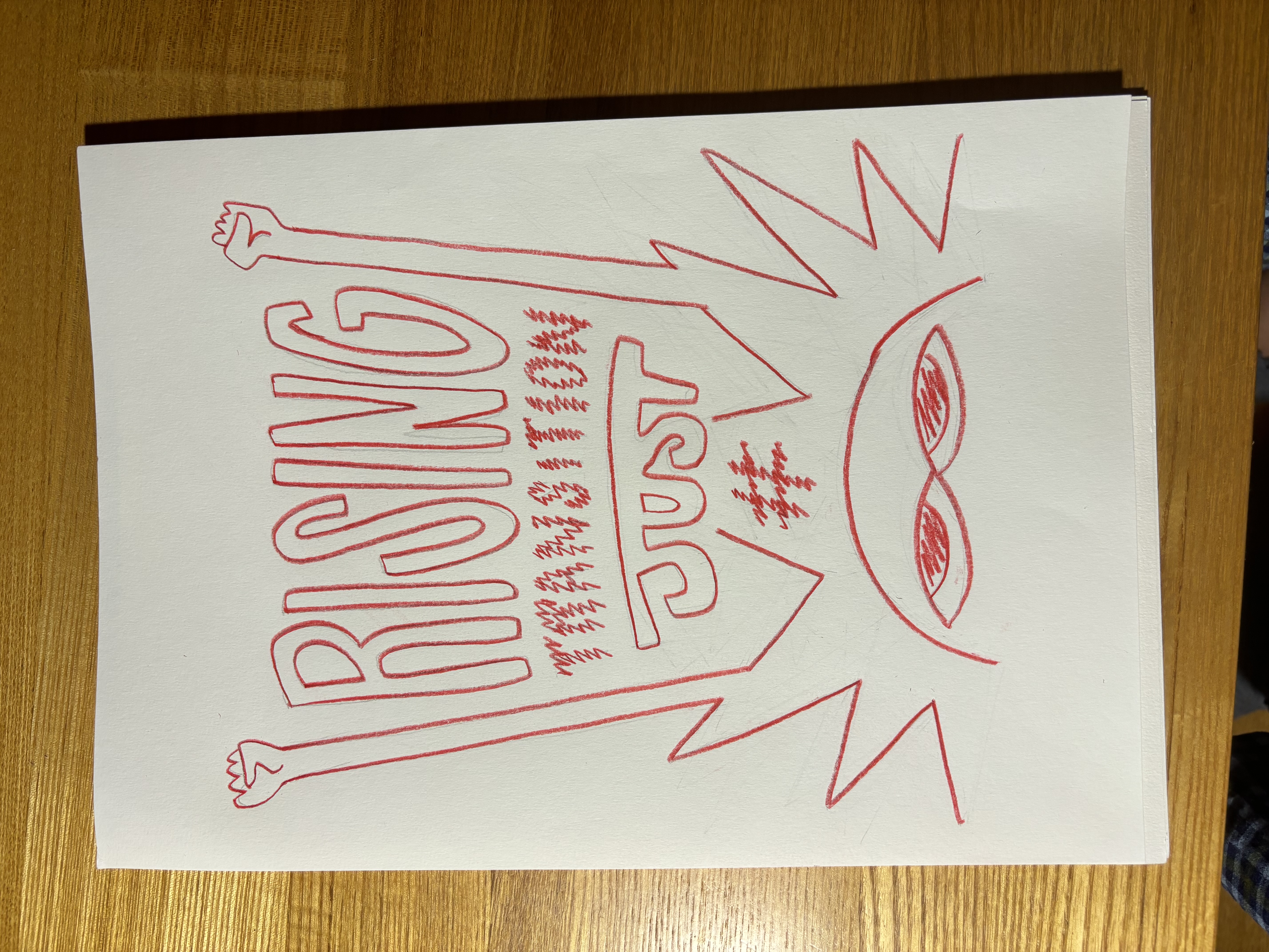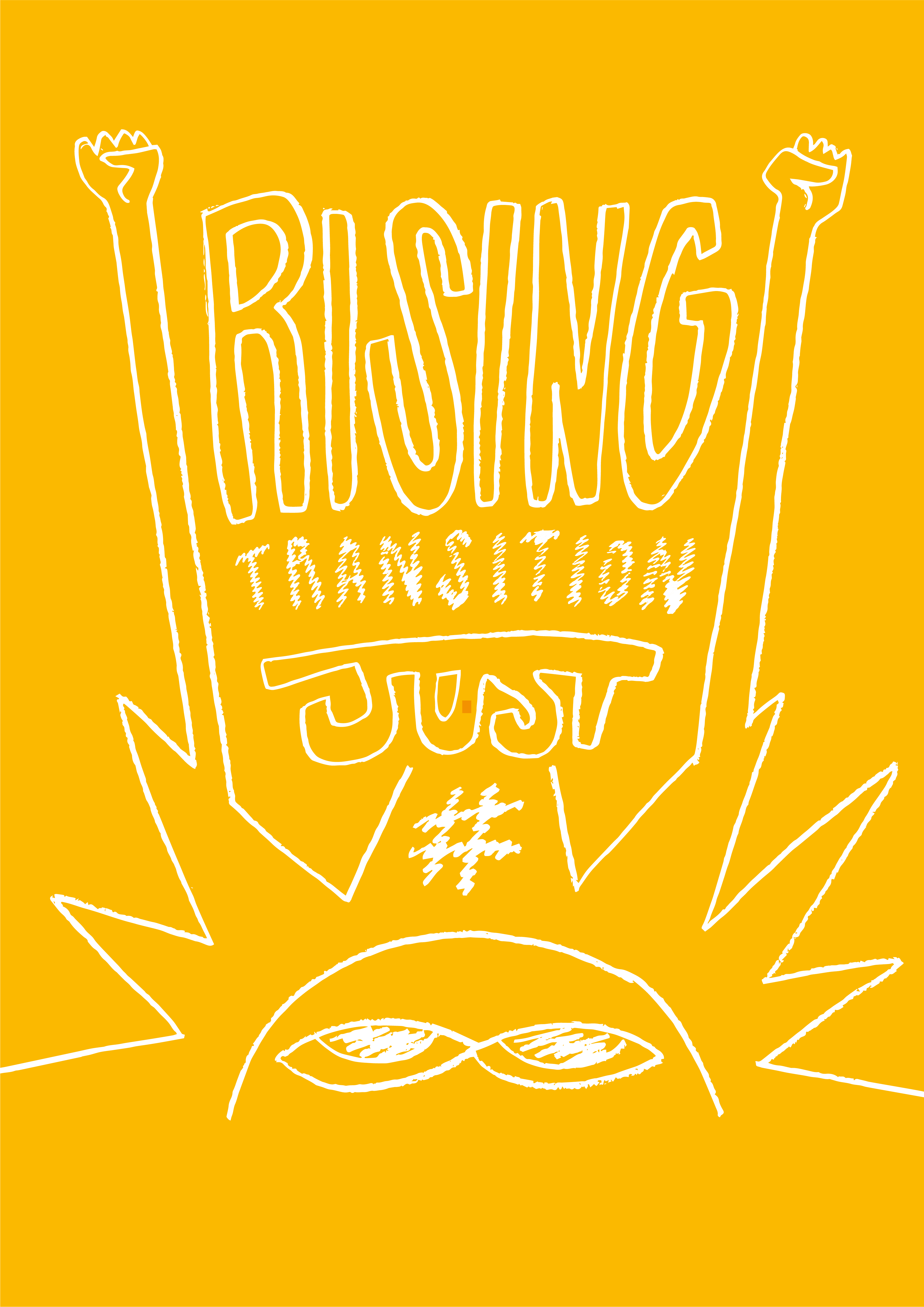 J’ai choisi d’utiliser certains symboles historiques des luttes populaires : des bras levés, des poings serrés, des visages à l’expression à la fois méfiante et en colère. J’ai également décidé de placer le soleil — victime et non responsable du réchauffement climatique — du côté de celles et ceux qui réclament justice.